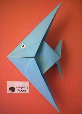 Hola!, llevo un buen rato buscando el modelo a seguir para que podáis hacer este pez, lo tengo en un libro pero no lo encuentro por internet para que podáis hacer el paso a paso. Este pez no lo he hecho yo, si no alguien de mi familia, yo intenté hacerlo y me pareció complicado, así que dejo aquí otro modelo de pez más sencillito también para hacer con niños.
